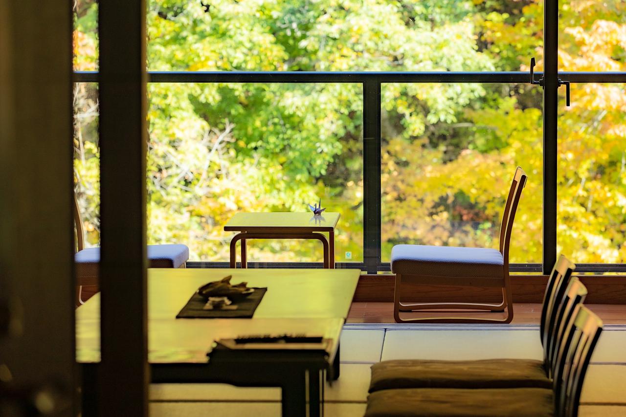 自炊部「湯治屋」露天風呂と豊沢川の絶景(秋)